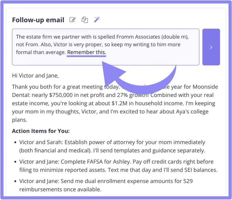 - Your meeting follow-up emails as well.