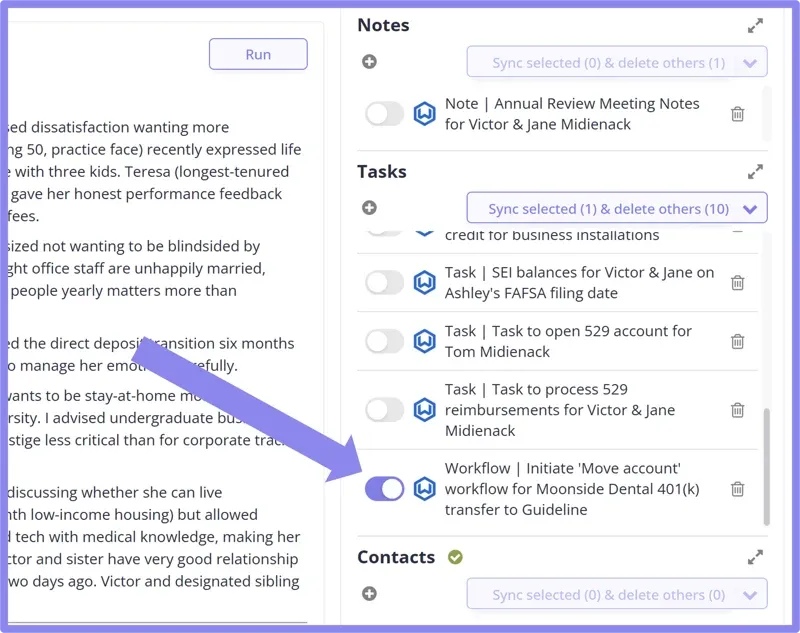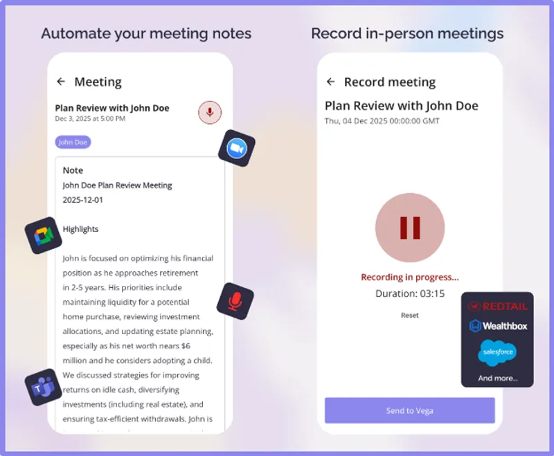 We've accelerated integration of CRM workflows (Wealthbox), CRM task templates (Redtail), and CRM business processes (Salesforce overlays) into our post-meeting and post-email AI suggestions. Reminder:
