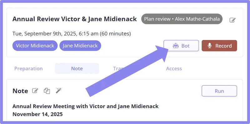 - Privacy: If your client wanted to start a very confidential conversation in the middle of your planning discussions, you can't simply pause the bot. You'd have to kick them out of the meeting, and lose the notes, or get scrappy ones.